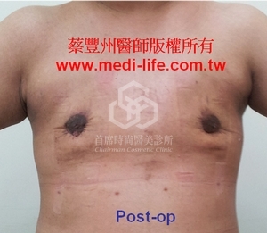 手術後完全平坦, 絕對不是用另一個人的照片, 或是放錯隆乳前後照片喔!! 大家可能會覺得很錯愕 或是 可惜, 其實每個人都有對自己身體不同主張的權利. 對於醫師而言, 手術的確比隆乳難, 而且很辛苦. 傷口位於乳暈內, 重點在於得"清"到一滴乳房組織都不剩, 還得兼顧多餘皮膚切除的分寸.