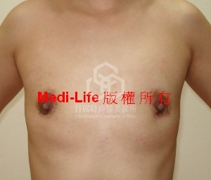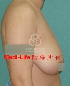 手術前, 此位T胸部為E罩杯. 此全切除技術其實比隆乳困難, 減少乳頭乳暈傷害前提下, 又得切除多餘乳房與皮膚乾淨, 一滴都不剩. 很特別的是, 前來求診要求切除的女同志, 幾乎每一個胸部都非常大, 目前我30位案例中, 都是D罩杯起跳!!