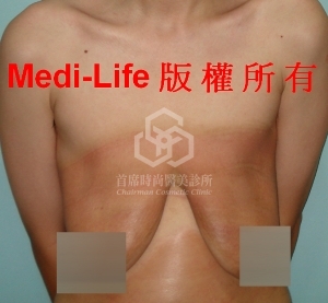 手術前, 壓迫+貼胸部很辛苦, 因為胸部非常大而且下垂, 色素沉澱的原因就是長年壓迫造成的.