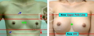 (2) 乳上線 往上; 乳下線(IMF) 往下: (最上圖紅色箭頭所示)