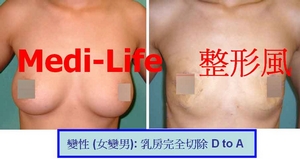 女變男的乳房篇就是把乳房的第二性徵完全夷為平地, 模仿男性平坦的胸部, 也就是乳房切除(breast amputation).