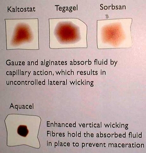 @ Aquacel Ag 減少周圍皮膚的浸蝕, 垂直吸收滲液,減少橫向擴散的機會(lateral wicking)