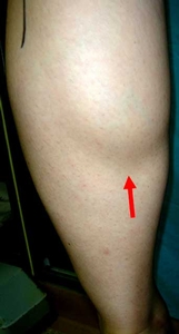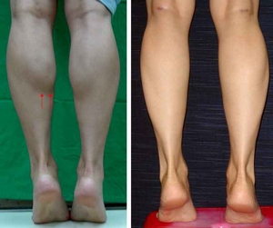 (1) 腓腸肌踮腳尖移動距離較大者: 此種消費者容易有肌突點!! <如下圖>