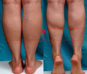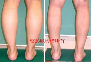 (6) 效果: 手術後做踮腳尖動作, 腿內側肌肉馬上軟化, 不再有突起的肌肉塊, 揮別陽剛感. 小腿圍體積縮小<15%左右(因人而異), 尤其是小腿內側突起部份.