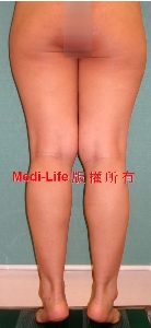 左圖是患者接受某診所 部份肌肉切除術後一年照. 不僅腿圍沒有明顯變小, 恢復過程疼痛不堪之外, 還回診抽了兩次血腫組織液.這也就算了, 重點是腿雕的精神, 肌突點消失與軟化更沒做到, 徒留照片中每一條腿兩道疤痕, 每一疤痕長約2.5cm. 中肯的說, 部分切除術適合只想改善一點點的人, 有點像路不平 就削掉局部, 整地一般.