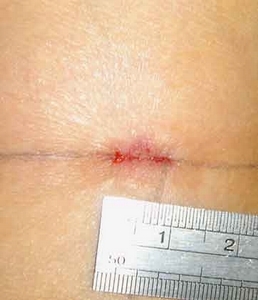 站長特殊的手術定位與器械, 已讓傷口小至 1 cm以內, 絕非謠傳傷口很大, 比韓國醫師的 2 to 2.5 cm 短, 當然更比肌肉直接切除術傷口 5 to 7cm 短 (其還有小腿肚的垂直第二道傷口). 整形美容手術屬於 非 必要療程, 傷口一定得小, 尤其膝蓋後方張力非常大, 建議患者注意此項重點, 以免未來妨礙觀瞻.
