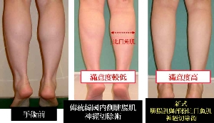 還有一個重點就是: 照片會說話, 您仔細看肌肉切除術的手術後照片就知道, 撇開大而明顯, 被故意遮住的疤痕不談, 腿型仍是往兩側鼓鼓的, 甚至有些會局部凹陷下去, 大都沒有墊腳尖照片(功能指標).....
