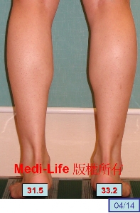 這是另一個案例!! 是目前世界上唯一針對小腿不對稱(asymmetrical calf hypertrophy), 唯一的解決方法, 也是站長研究肌肉神經基礎研究與臨床經驗多年的心血結晶. 因為只有神經整形可以定量, 可以科學的讓兩腿接近, 而不是靠醫師手術時主觀的視覺調整. 21世紀了, 手術可不能這裏肌肉拿一點, 那裡肌肉拿一點. 我已經寫成學術論文, 投稿至醫學期刊 Plastic and Reconstructive Surgery. 此患者手術前的數據分別是左小腿 31.5 cm, 右小腿 33.2 cm, 兩腿差距高達 1.7 cm; 手術後接近四個月, 目前左小腿 29.9 cm, 右小腿 30.5 cm, 兩腿差距縮小為 0.6 cm.