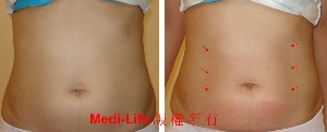 改善其產後腹部鬆弛問題, 治療後, 可見凹陷感 不再凸凸一駝, 同時往上提.