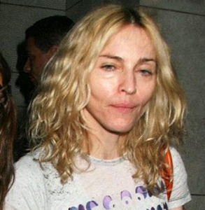 瑪當娜, 這幾年已經不是老化的問題, 而是因為精神狀態壓力造成的 臉頰凹陷( facial or cheek depression ), 面容憔悴不少. 這需要脂肪填補(fat grafting)來改善這個過度壓力甚至過當減肥的情況.