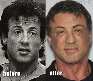 曾經多麼英勇的席維斯史特龍, 則是疑似類固醇與肥胖雙重因素, 導致臉部浮腫與脂肪堆積.