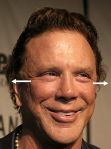 曾經因為電影<<愛你九週半>> 成為性感男星象徵的米基洛克, 拉皮拉成橫向, 也算是整形的失敗案例. 不過恭喜他, 2009年因為一部摔角電影, 本來已經過氣的他, 又是"一片"東山再起囉!!