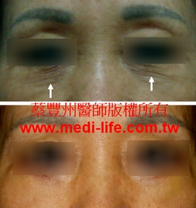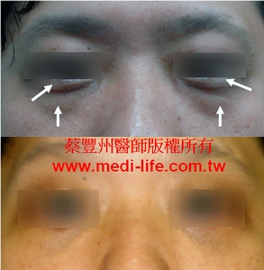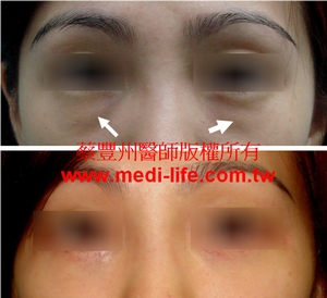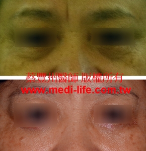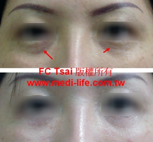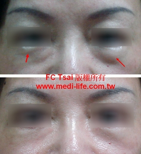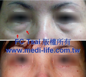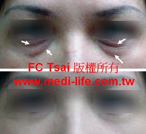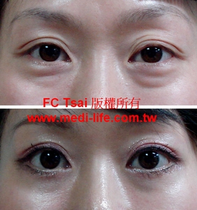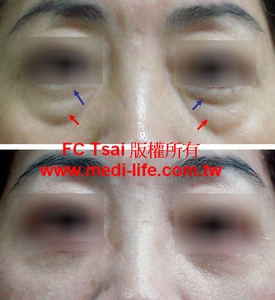 手術前 眼袋 加上黑眼圈 看起來超級沒精神, 雖然她"只有" 28歲. 手術後一片平坦!!